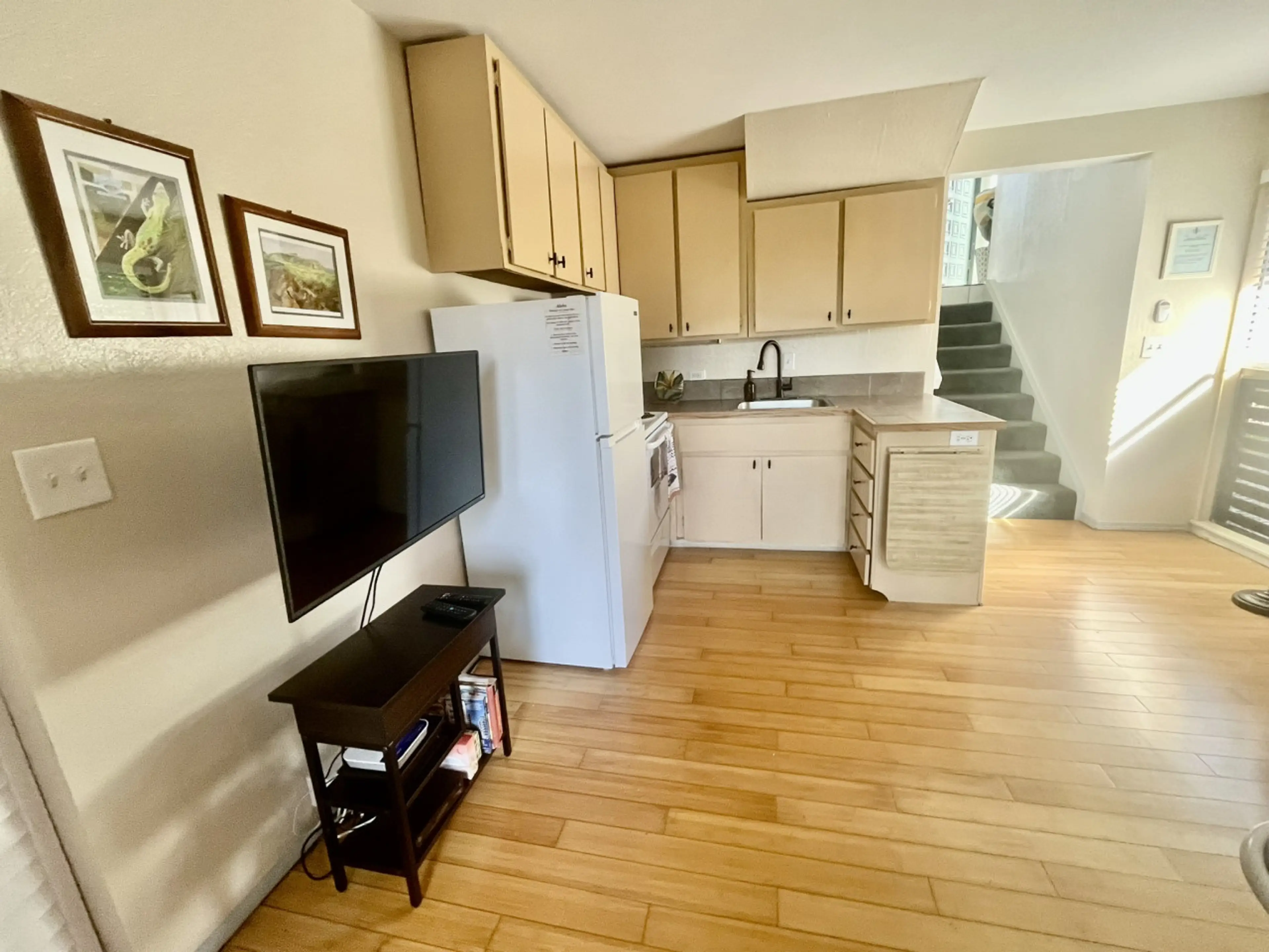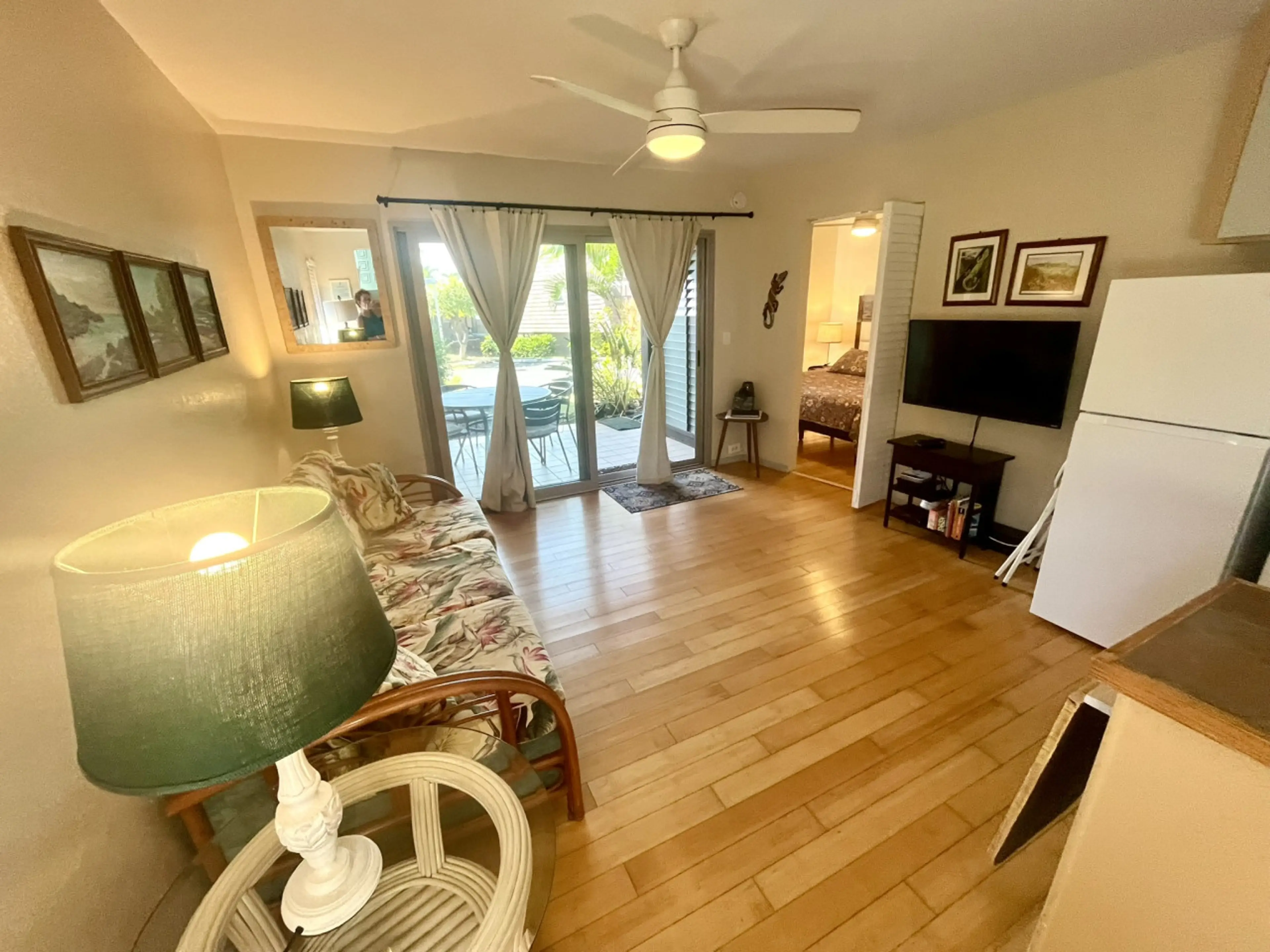 This charming unit sleeps 4. It gets its name, ‘OLU ’OLU, from the unique ‘olu ’olu (pleasant and refreshing) energy you will experience. The bedroom has a new memory foam King-sized bed and the living room has a Queen-sized sleeper sofa. This unit is bright, clean, and open, and just a few steps t...